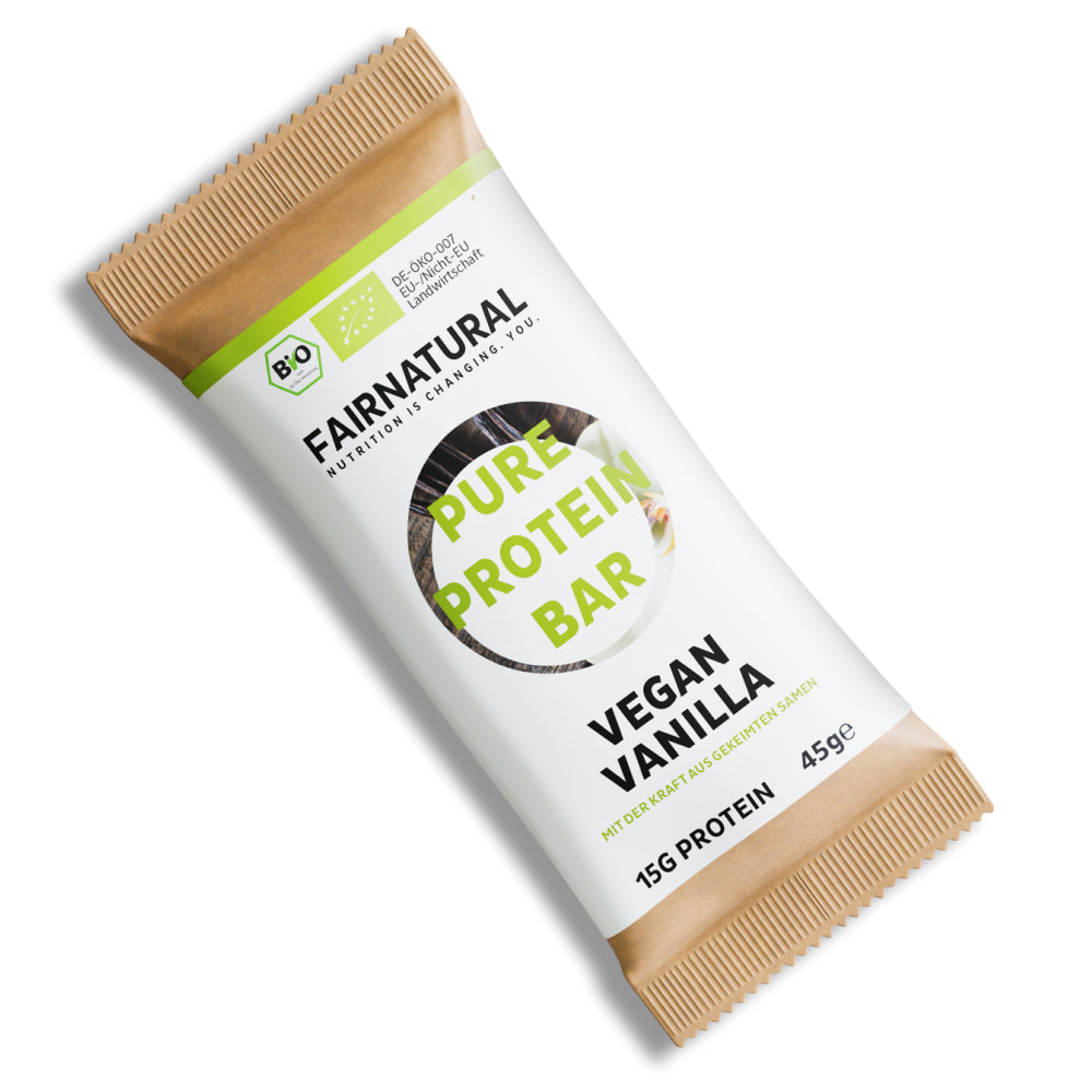 ✔ 1x deliziosa barretta proteica biologica alla vaniglia à 45g con semi germogliati sazianti